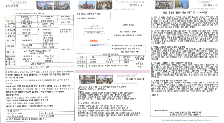 11설 예배지 필요하신 분 필경대에 비치되어 있으니 가져가시길 바랍니다.